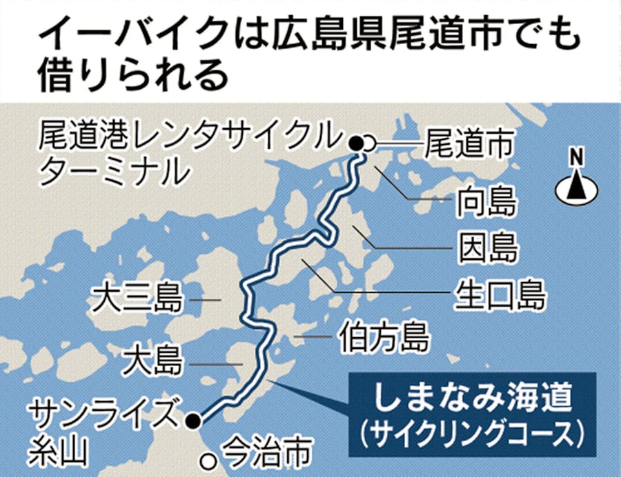 イーバイク しまなみ海道 スイスイ 女性もラクラク 日本経済新聞