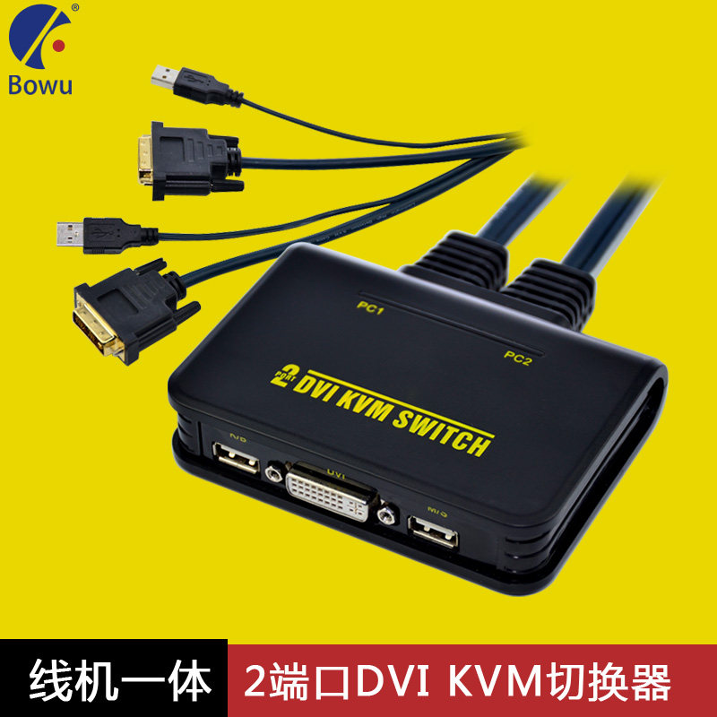艾迈视kvm切换器2口usb印表机共享器2进1出延长线一分二自动切换电脑延长线一拖二